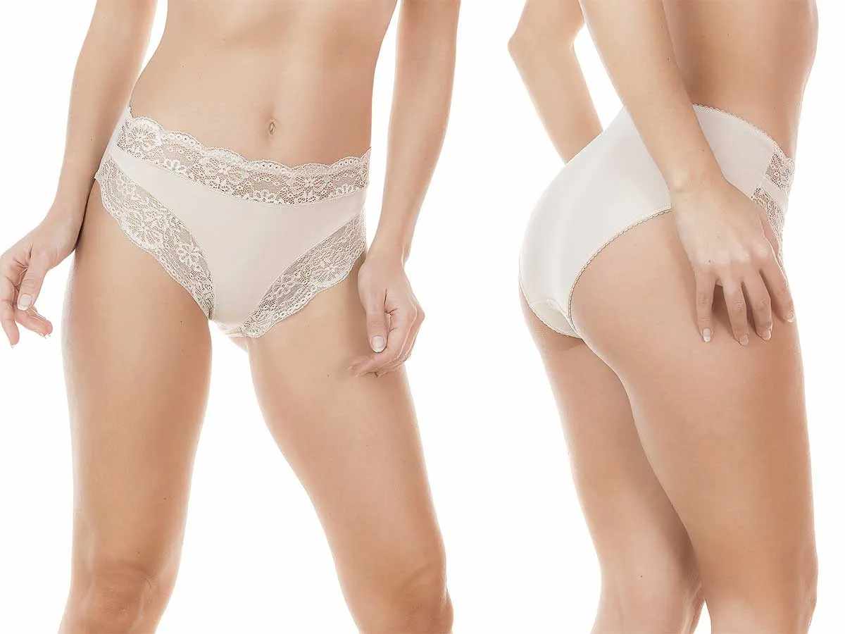 Napravljen od visokokvalitetnog pamuka (95%) sa dodatkom elastana (5%), ovaj model omogućava slobodu pokreta i dugotrajnu udobnost. Prednji deo je ukrašen finom čipkom za ženstven izgled, dok je zadnji deo klasičan i potpuno pamučan, pružajući mekoću i prozračnost tokom celog dana.
