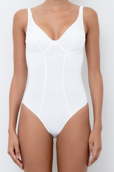 Široke i nepodesive bretele osiguravaju stabilnost, dok korpe bez žice pružaju maksimalni komfor bez žrtvovanja podrške. Ojačana struktura s duplim materijalom dodatno podupire, čineći ovaj bodi idealnim izborom za svakodnevnu udobnost.