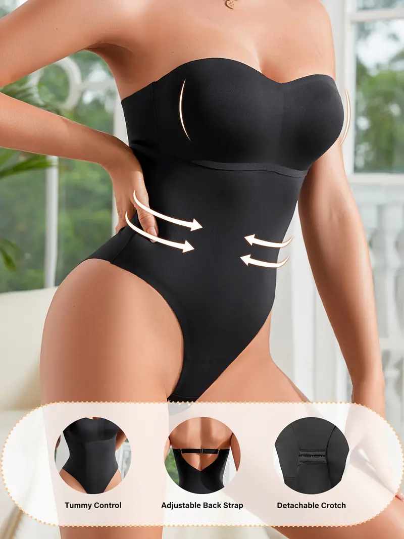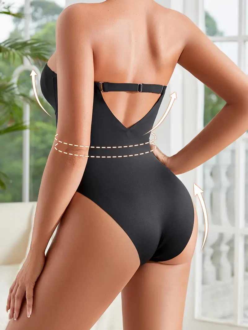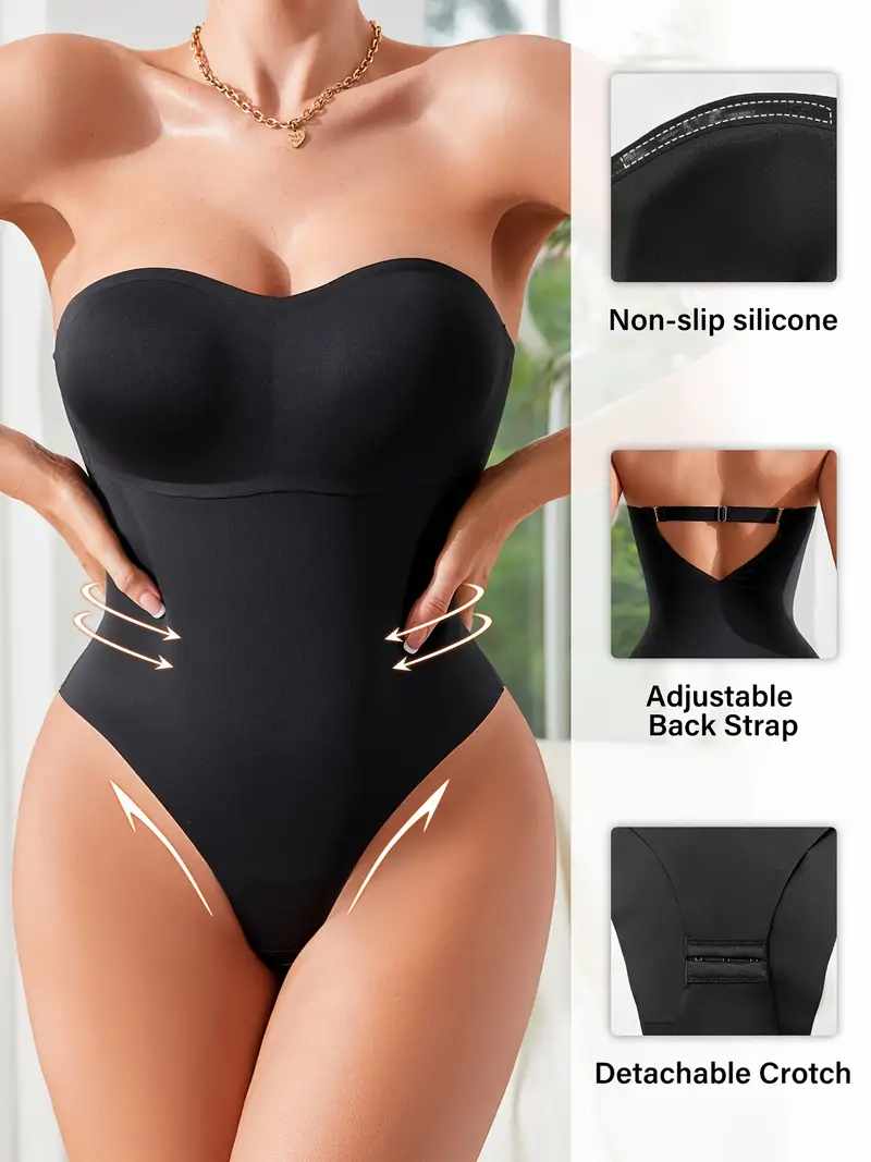 Laserski sečen i bez šavova, bodi se prilagođava telu, nudeći besprekorno pristajanje i udobnost tokom celog dana. Silikonska traka na grudnjaku osigurava da bodi ostane na mestu, bez klizanja, dok dizajn bez bretela omogućava nošenje sa haljinama i odelima sa golim ramenima.