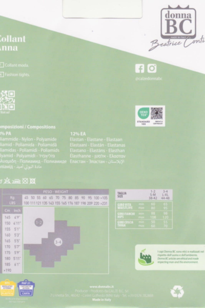 | Veličina | Čarape broj 1/2 (kg.40-65) (cm.145-165), Čarape broj 3/4 (kg.60-75) (cm.155-175) |