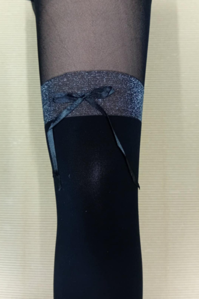 Posebnu vizuelnu notu daje diskretna svetlucava traka koja podseća na dizajn samodržećih čarapa, čineći ovaj model idealnim za sve prilike kada želite da vaš stil odiše suptilnom senzualnošću. Crna nijansa naglašava eleganciju i vizuelno izdužuje noge, a univerzalna veličina (do 80 kg) obezbeđuje prilagodljivost i lako nošenje, bez nabora i zatezanja.