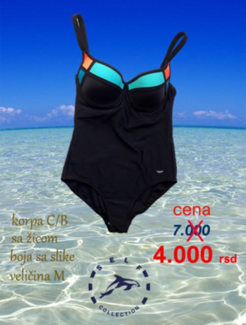Sa osnovnom teget bojom i atraktivnim šarama u zelenim i narandžastim tonovima, ovaj model donosi osveženje svakom tenu. Njegova formirana E korpa sa žicom pruža potrebnu podršku i čini da se svaka dama oseća sigurno i lepo – čak i tokom aktivnog dana na plaži ili bazenu.