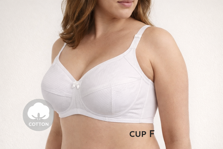 F korpa je tanka i bez punjenja, omogućavajući prirodan oblik i lagan osećaj pri nošenju. Kako model nema žicu, idealan je za žene koje preferiraju opušteniju konstrukciju uz zadržanu stabilnost i potporu. Kroj je osmišljen da ravnomerno rasporedi težinu i pruži sigurnost bez nelagodnosti.