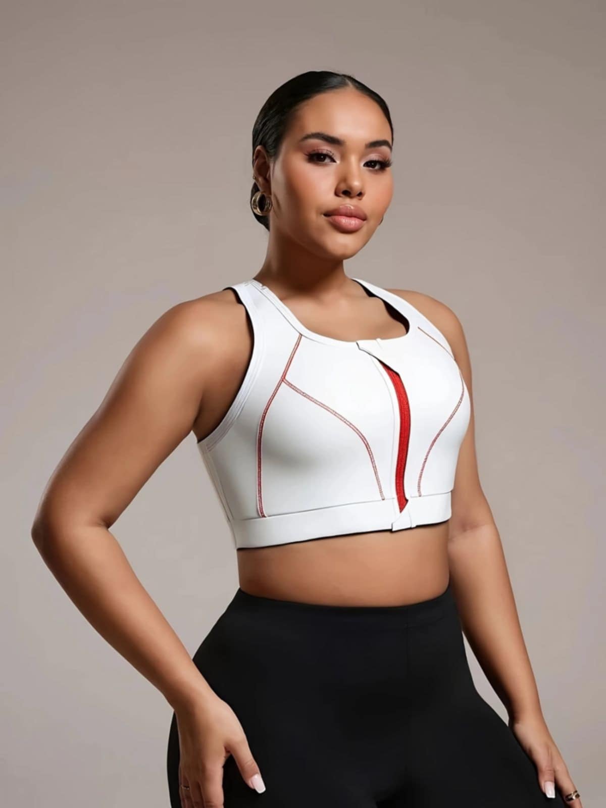 Zahvaljujući crvenim šavovima i cipzaru, ovaj model nije samo praktičan već i vizuelno zanimljiv, dodajući dozu stila i energije. Dostupan u veličinama 100–130 (4XL–6XL) i u neutralnim, lako uklopivim bojama – beloj, crnoj i sivoj.
