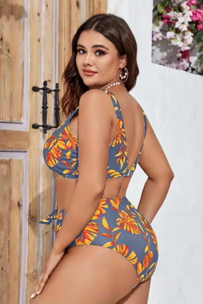 Kupaći kostim 26930 osmišljen je za žene koje žele kombinaciju sigurnog kroja, udobnosti i modernog dizajna u većim veličinama. Osnovna siva boja daje modelu eleganciju i svestranost, dok plavi i žuti detalji unose svežinu i energiju, čineći ga atraktivnim izborom za sunčane dane na plaži ili bazenu.