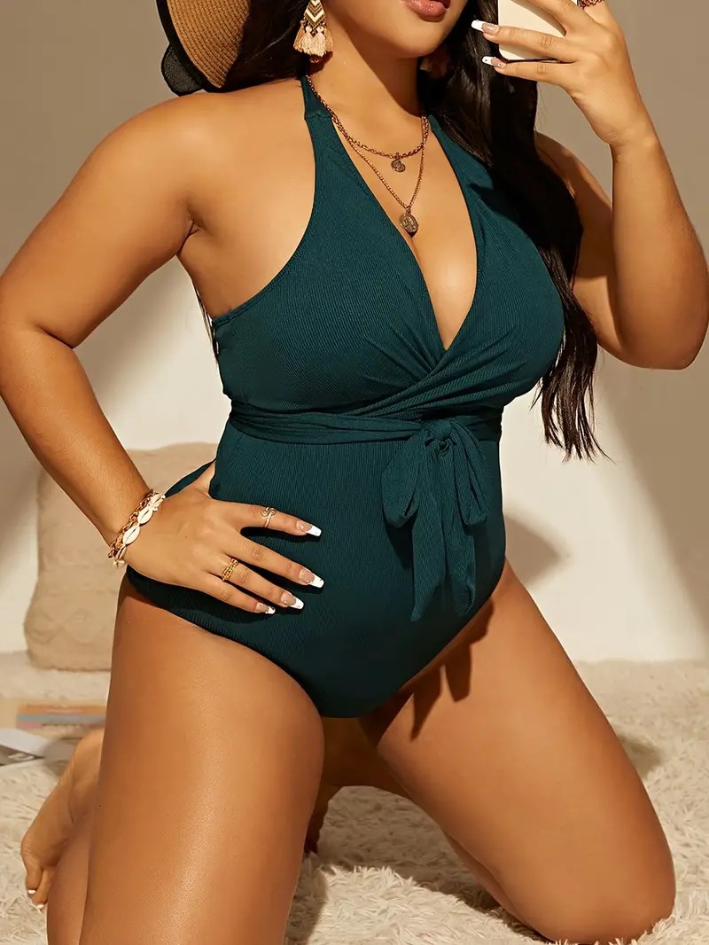 Uživajte u stilu i udobnosti na plaži uz jednodelni zeleni kupaći kostim model 24633, dizajniran posebno za dame u plus veličinama. Ovaj sofisticirani model dostupan je u veličinama XXL, XXXL, i 4XL, osiguravajući savršeno prijanjanje i isticanje vaših oblina.