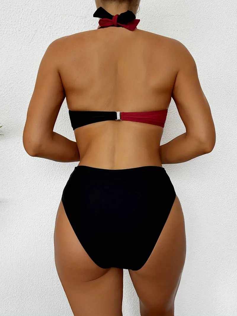 - Boja: Kupaći kostim u klasičnoj crnoj boji sa sofisticiranim bordo detaljima, savršen za elegantan izgled na plaži.