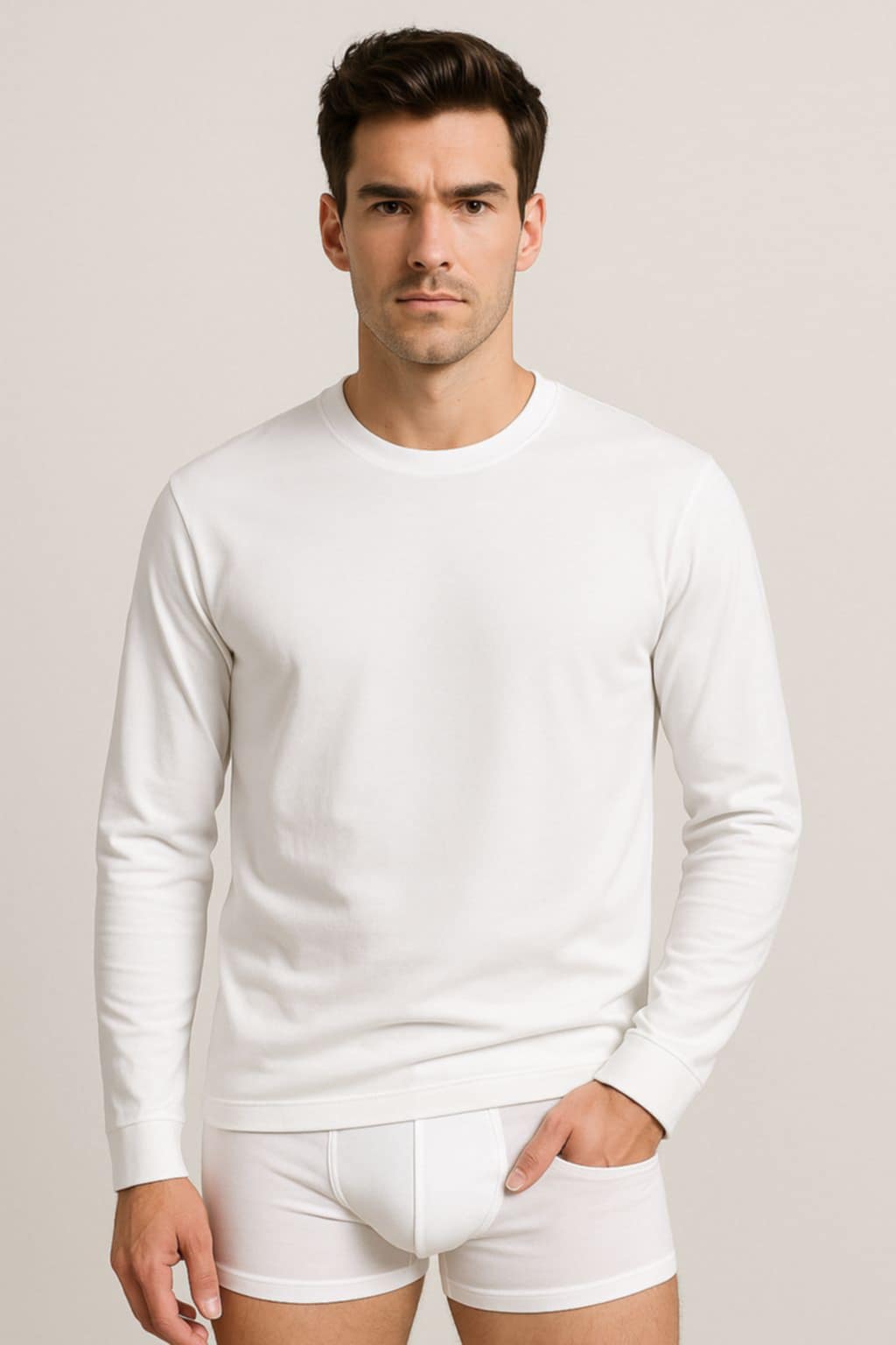 Muška majica dugih rukava 25918 predstavlja praktičan i neizostavan komad garderobe za sve prilike. Izrađena je od kvalitetnog pamuka sa dodatkom elastina (95% pamuk, 5% elastan), što joj daje prijatnu mekoću i fleksibilnost pri nošenju. Klasičan kroj pruža udobnost i slobodu pokreta, dok jednostavan dizajn omogućava lako kombinovanje sa farmerkama, pantalonama ili sportskom garderobom. Ovaj model se može nositi samostalno u prolećnim i jesenjim danima, ili kao osnovni sloj ispod jakne i dukserice tokom hladnijeg vremena.