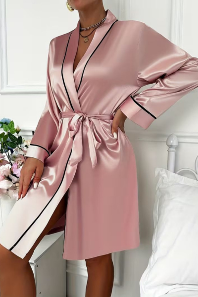 Satenski ogrtač 25846 – luksuzna mekoća i sofisticirani kontrast