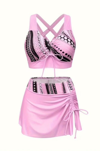 Ženski kupaći kostim iz tri dela model 241327 u romantičnoj roze boji predstavlja savršen izbor za dame koje žele lagan, udoban i elegantan kupaći za letnje dane. Dizajniran je tako da pruži osećaj slobode i prirodnosti, bez stezanja i nelagodnosti, bilo da se opuštate na plaži ili uživate pored bazena.