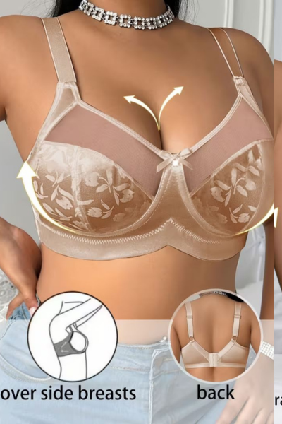 Estetsku notu ovom grudnjaku daje pažljivo osmišljena kombinacija materijala. Donji deo korpe izrađen je od satena koji pruža nežnost i elegantan izgled, dok je gornji deo ukrašen tilom koji deluje lagano i dekorativno, diskretno naglašavajući liniju dekoltea. Ovaj detalj daje modelu posebnu ženstvenost i sofisticiranost.