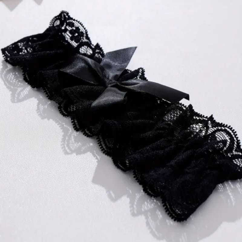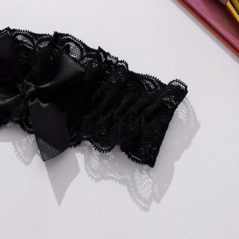 Podvezica je izrađena od raskošne crne čipke koja daje vizuelnu dubinu i luksuzan utisak. U njenom središtu nalazi se dekorativna crna mašna – simbol klasičnog šarma i ženstvenosti. Zahvaljujući univerzalnoj veličini, lako se prilagođava obliku noge i pruža udobnost tokom nošenja.